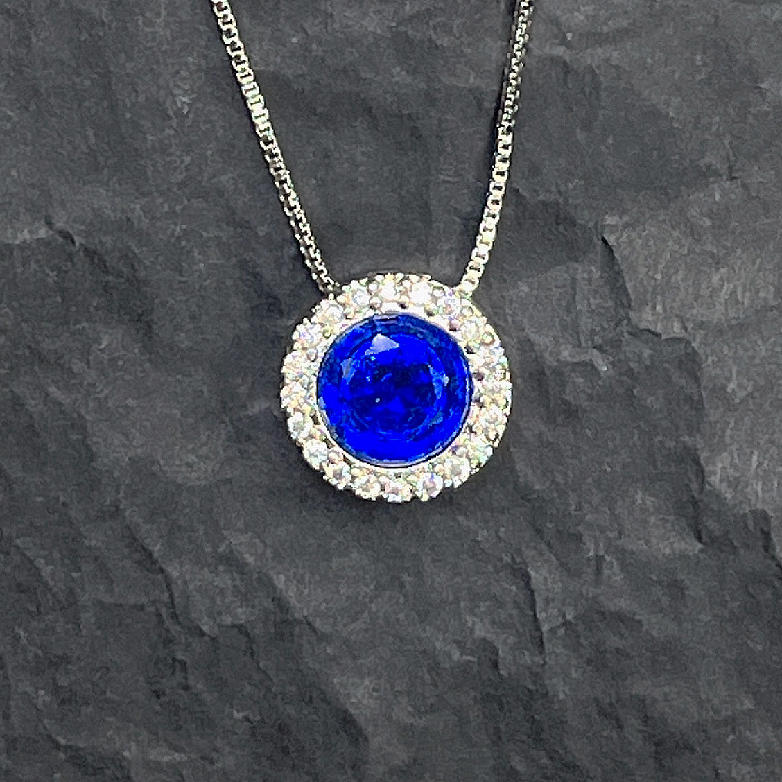 Ins Style Xiaohongshu Best-Selling Disc Inlaid with Sea Blue Zircon Necklace Pendant Jewelry for Women Adjustable Fashion