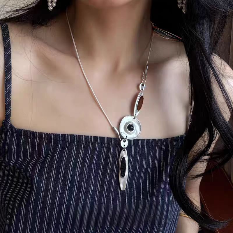 Fashion Versatile Teardrop Meteorite Disc Snake Bone Necklace Light Luxury High-End Pendant Versatile Personality Long Necklace