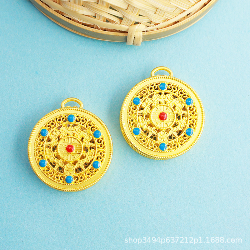 Ancient method gold enamel eight treasures disc Fuman jewelry pendant diy necklace key pendant car pendant accessories