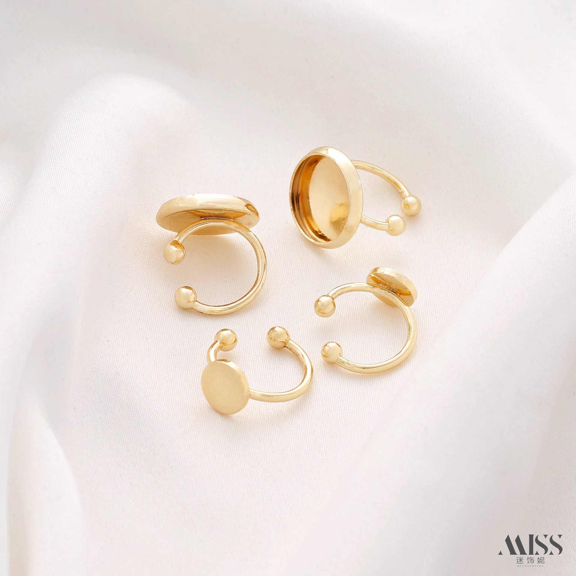 14K Gold-Filled Color-Preserving Round Base Gemstone Disc Empty Base Ear Cuff DIY Non-Pierced Earrings Ear Jewelry Accessories