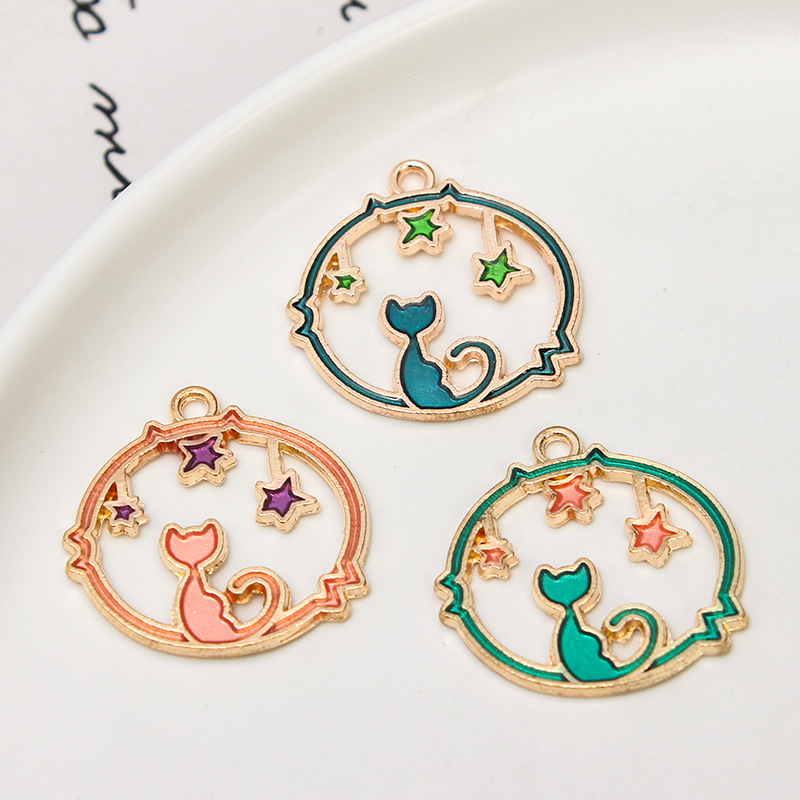 diy Korean Style Jewelry Accessories Oil Dropping Alloy Small Pendant Bracelet Pendant Pearlescent Star Cat Disc Pendant