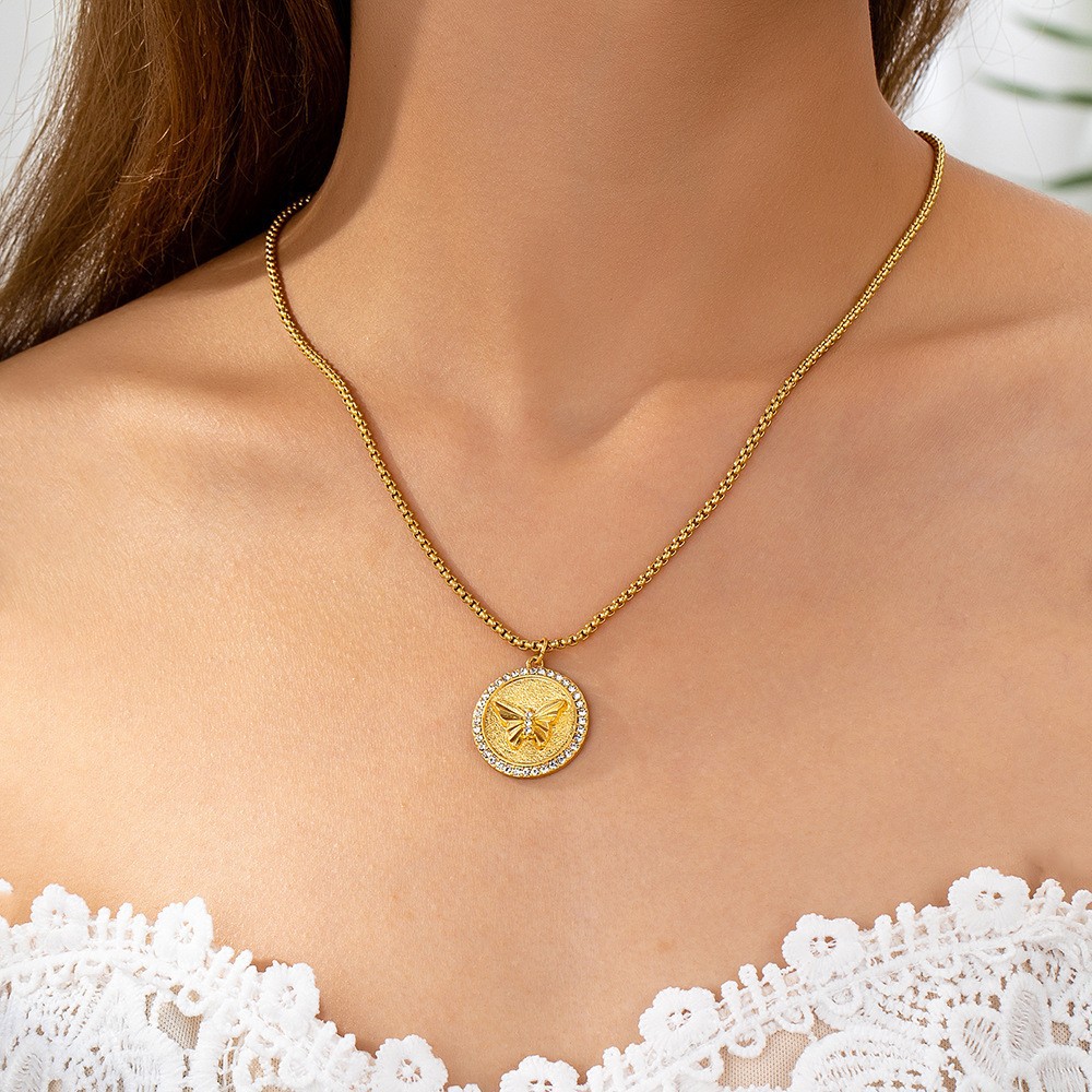 Cross-Border Hot Selling European and American Fashion Light Luxury Clavicle Chain Disc Butterfly Pendant Necklace Women Qingdao Jewelry Wholesale