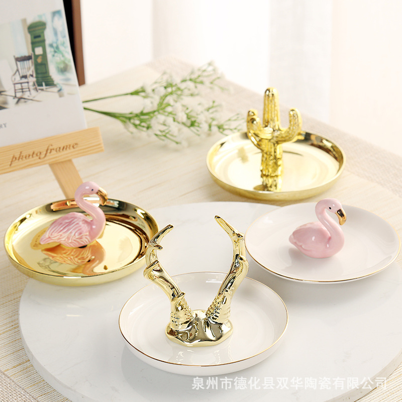Nordic Ceramic Jewelry Rack Export Jewelry Ring Gold Rabbit Storage Tray Creative Home Decoration Wholesale Porcelain Tray