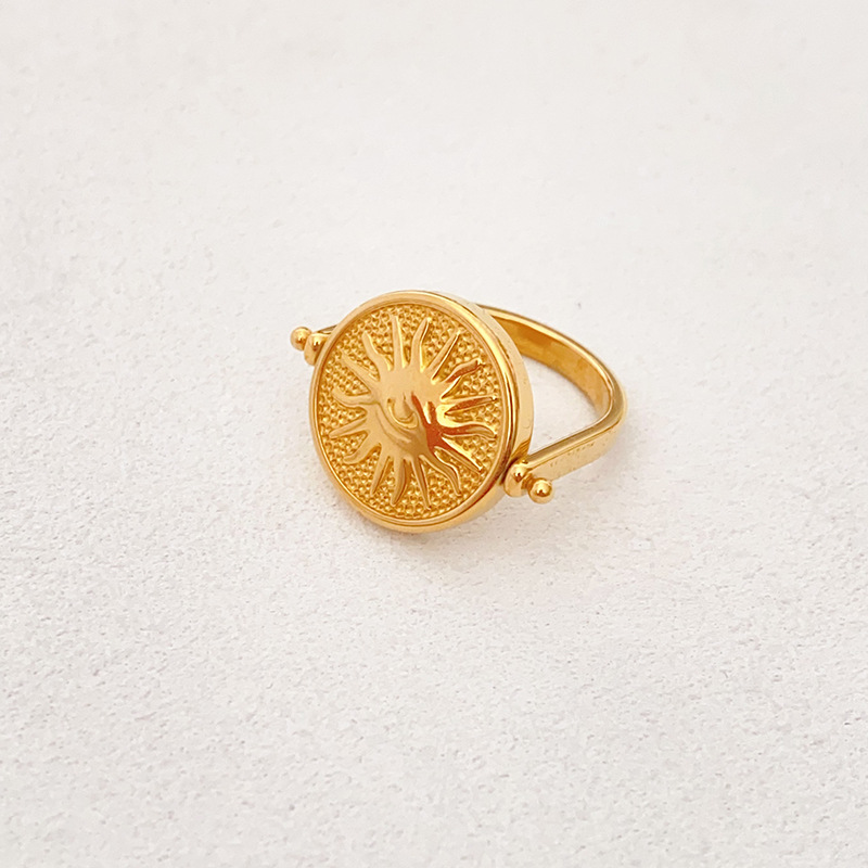 New Fashion Retro Sun Moon Star Double-sided Embossed Rotatable Disc Ring Golden Light Luxury Finger Ring