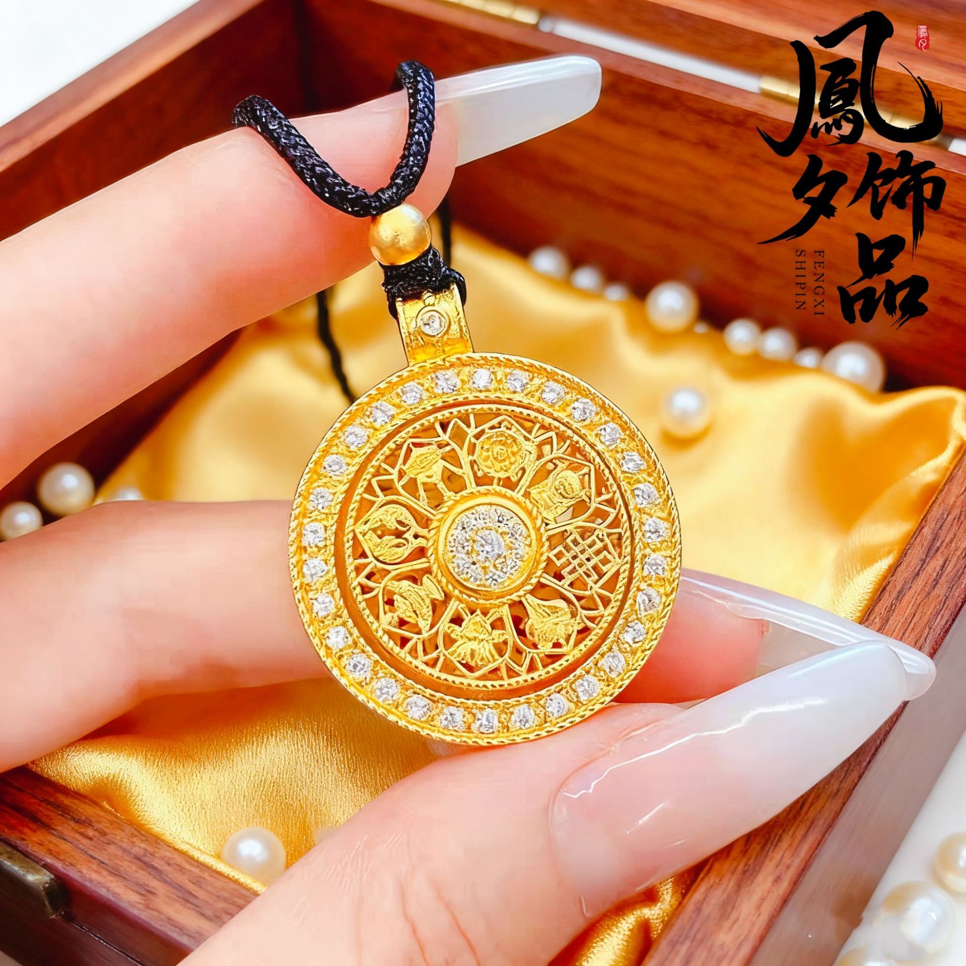 Disc Rotating Bead Necklace Ancient Diamond Gold Eight-Treasure Compass Pendant Gold Store Same Style Pendant Jewelry Jewelry