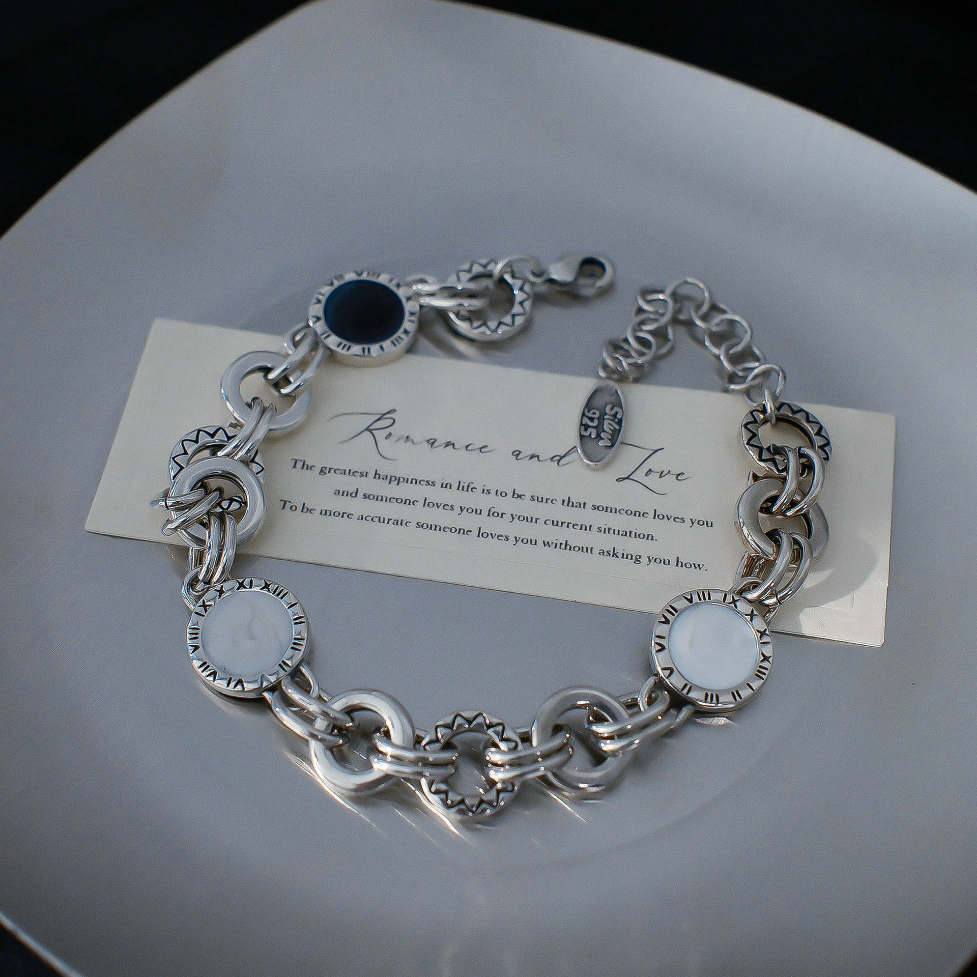 Cross-Border Popular Versatile Enamel Drip Glaze Black and White Double-Sided Roman Disc Bracelet Niche Sun Pattern Exquisite Hand Jewelry