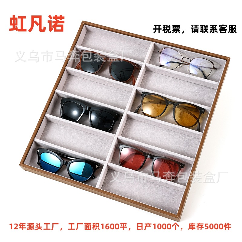 Wood Grain Leather 10-Slot Glasses Display Tray Pu Sunglasses Props 6 Pairs of Sunglasses Storage Tray Glasses Rack Cross-Border Hot Sale