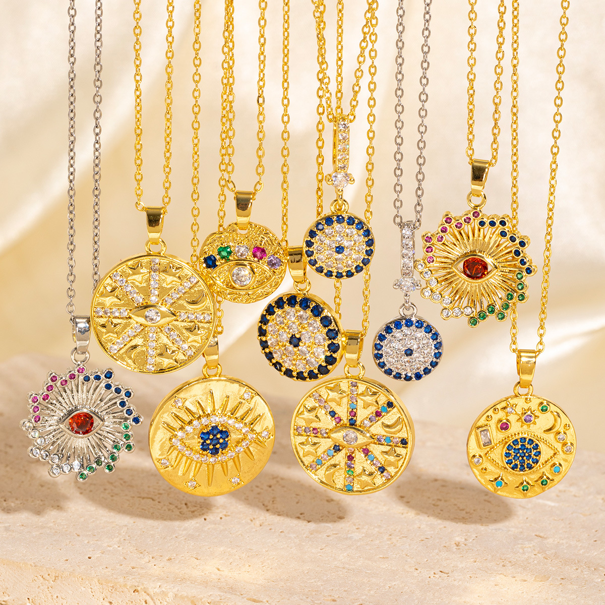 Amazon cross-border explosions diamond eyes zircon disc pendant necklace does not fade niche design jewelry wholesale