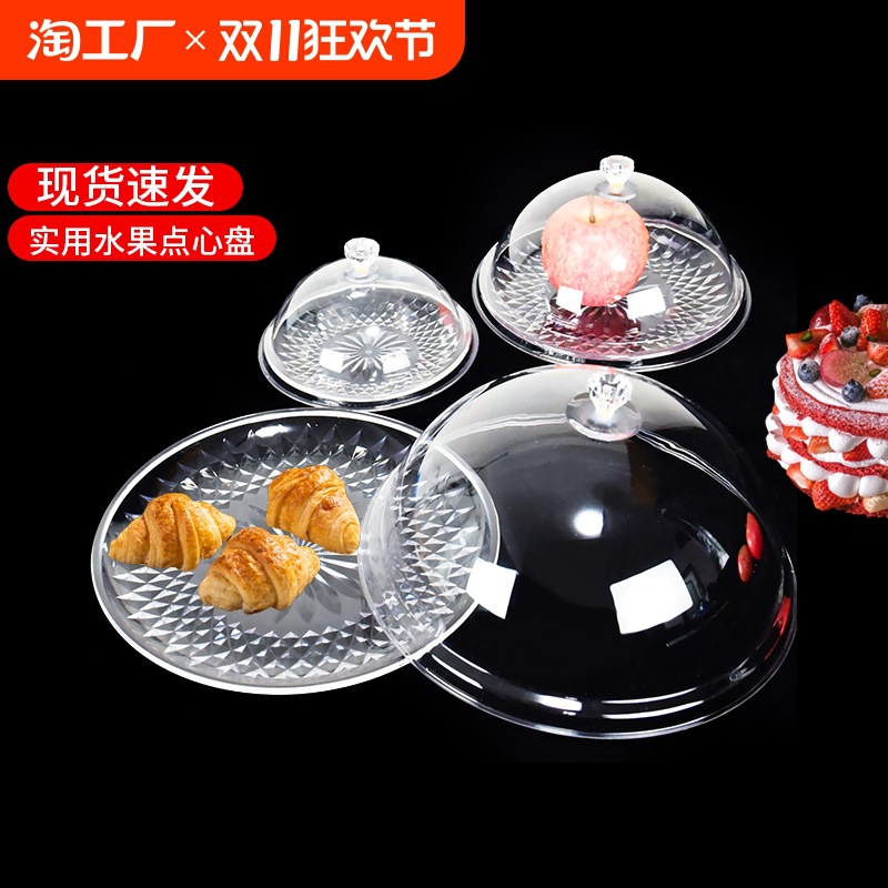 Fruit Tray Transparent Plastic Tray with Lid Bread Food Display Tray Tray Tray Tray Round Fruit Distry Tray
