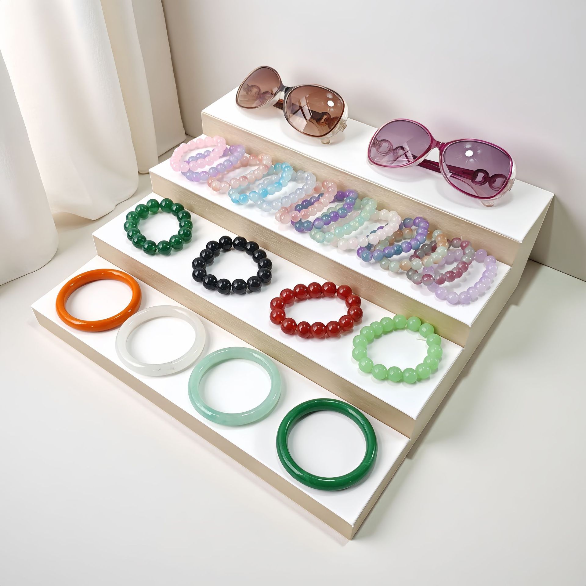 Brushed Leather Four-Layer Trapezoidal Glasses Display Plate Multi-Layer Jewelry Display Plate Bracelet Plate Bracelet Plate Ring Display Plate
