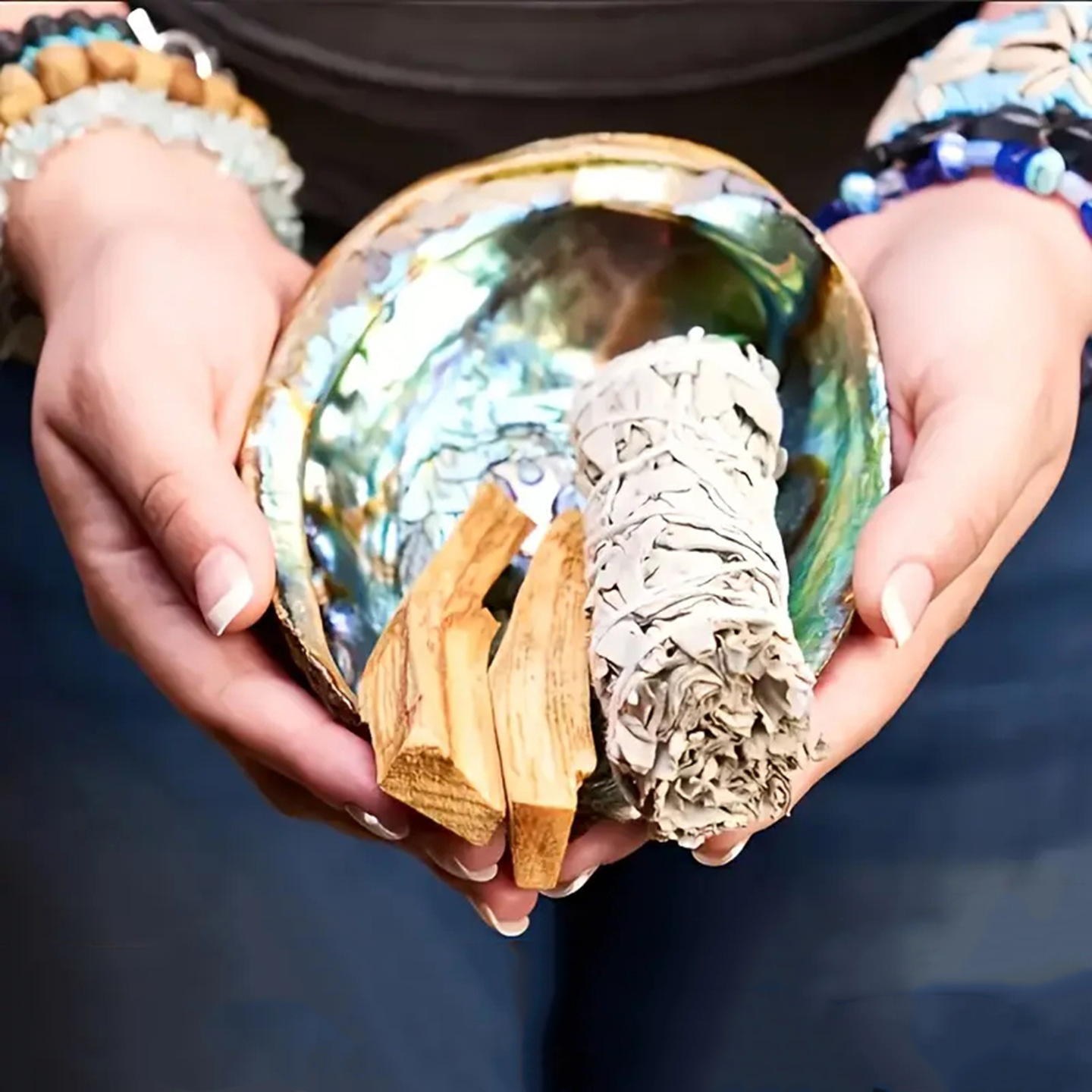 Crystal Bracelet Ornaments Purifying and Degaussing White Sage Peruvian Sacred Wood Abalone Shell Plate Home Ornaments Storage Decoration