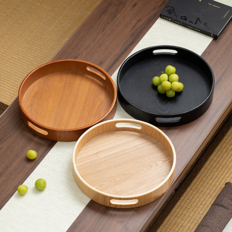 Ash Pallet Wooden Round Cake Fruit Afternoon Tea Dessert Coffee Shop Dinner Plate Baking Shop Display Plate