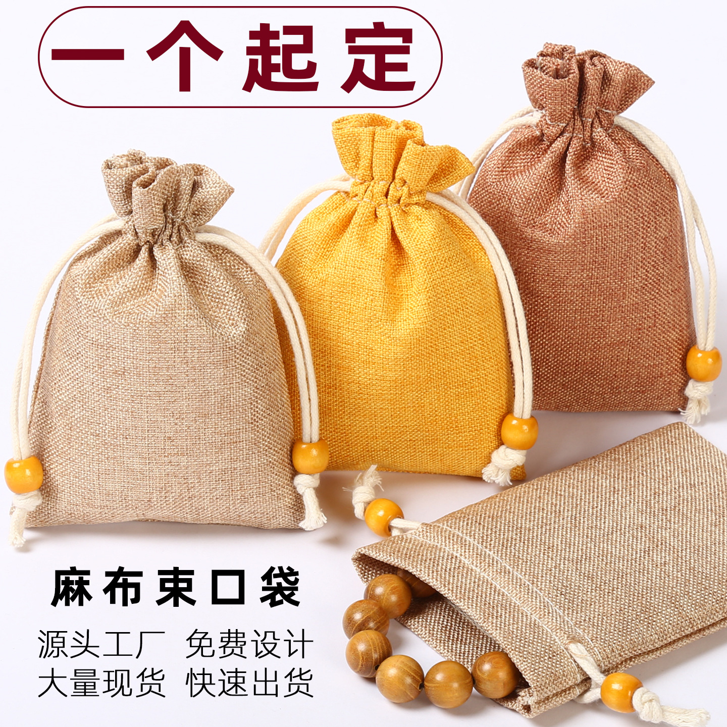 Linen Drawstring Bag Custom Storage Bag Bracelet Gift Packaging Bag Bead Bag Toy Bag Small Cloth Bag Printing Design