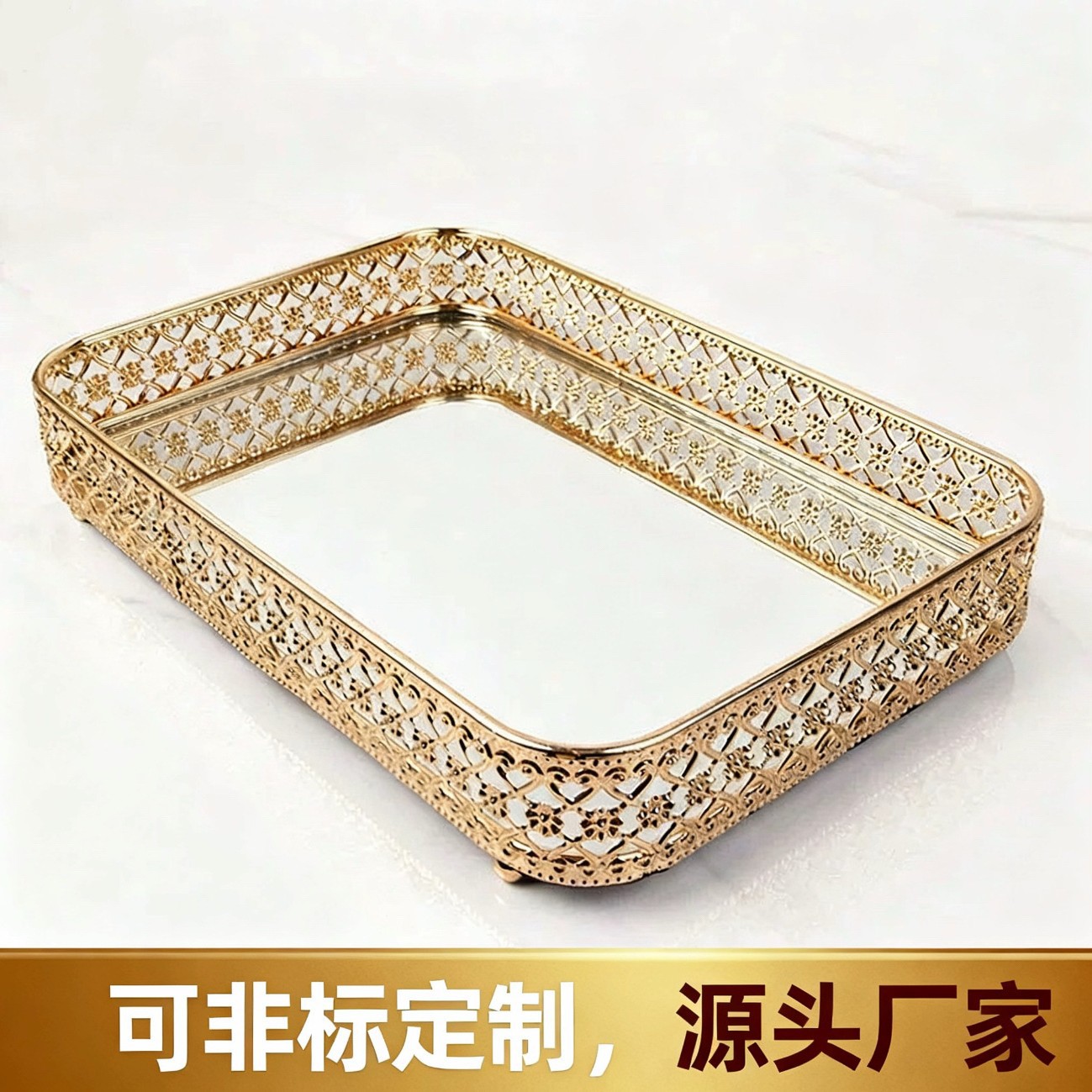 European Accessible Luxury Metal Mirror Tray Hotel Home Fruit Tray Cosmetics Storage Tray Jewelry Tray Snack Tray Tea Tray