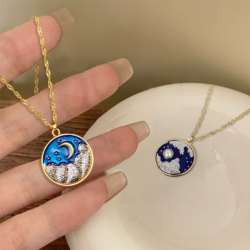 Cross-Border Vintage Court-Style Enamel Necklace for Women, Geometric Exquisite Disc Pendant Necklace Wholesale Chain