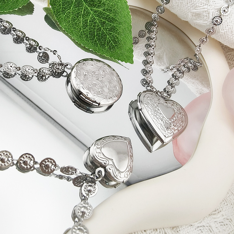 Retro DIY Titanium Steel Photo Box Disc Necklace Opens to Hold Photos Without Fading Heart Pendant Necklace Jewelry