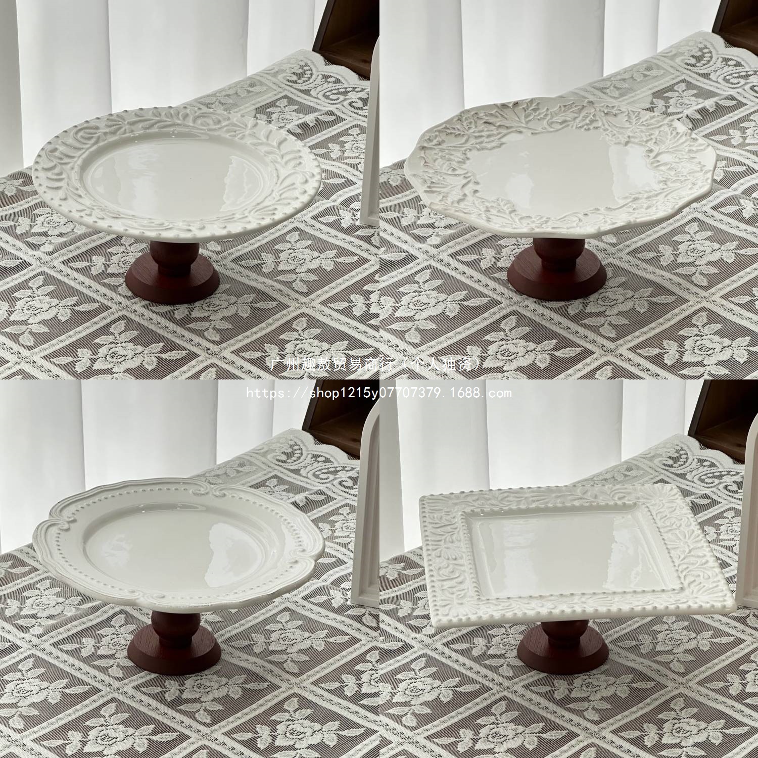 French Lace Ceramic Tall Plate Cake Plate Ins Style Round Afternoon Tea Dessert Snack Plate Exquisite Display Plate