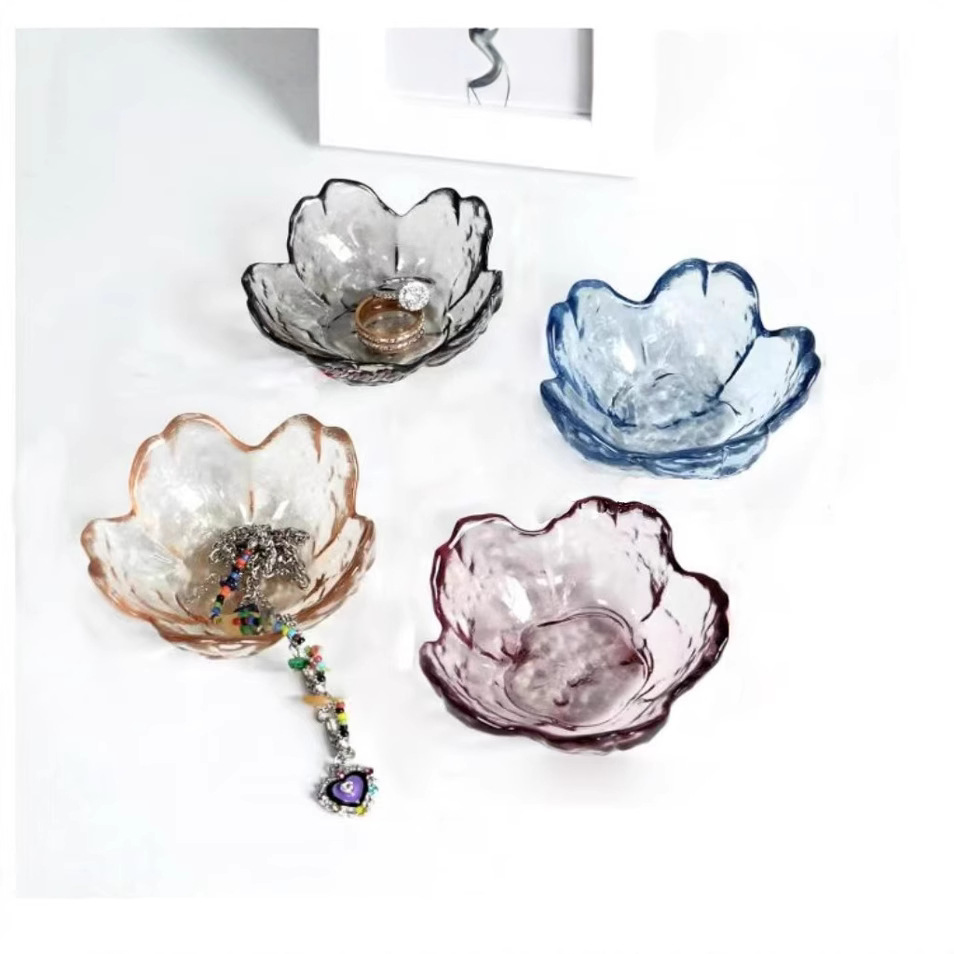 Ins European-style Cherry Blossom Mixed Color Glass Ring Tray Jewelry Tray Colorful Japanese Dip Dish Decorative Tray Hammer Eye Pattern