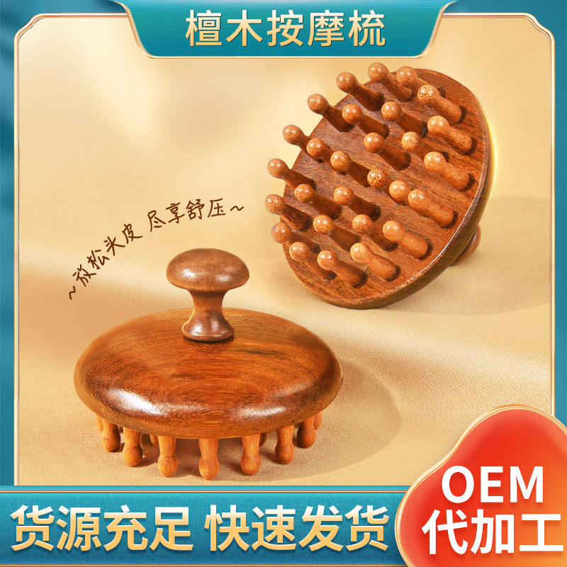 Golden silk sandalwood disc 28 teeth meridian comb skin massage comb tendon comb hair healing finger ring comb massage comb