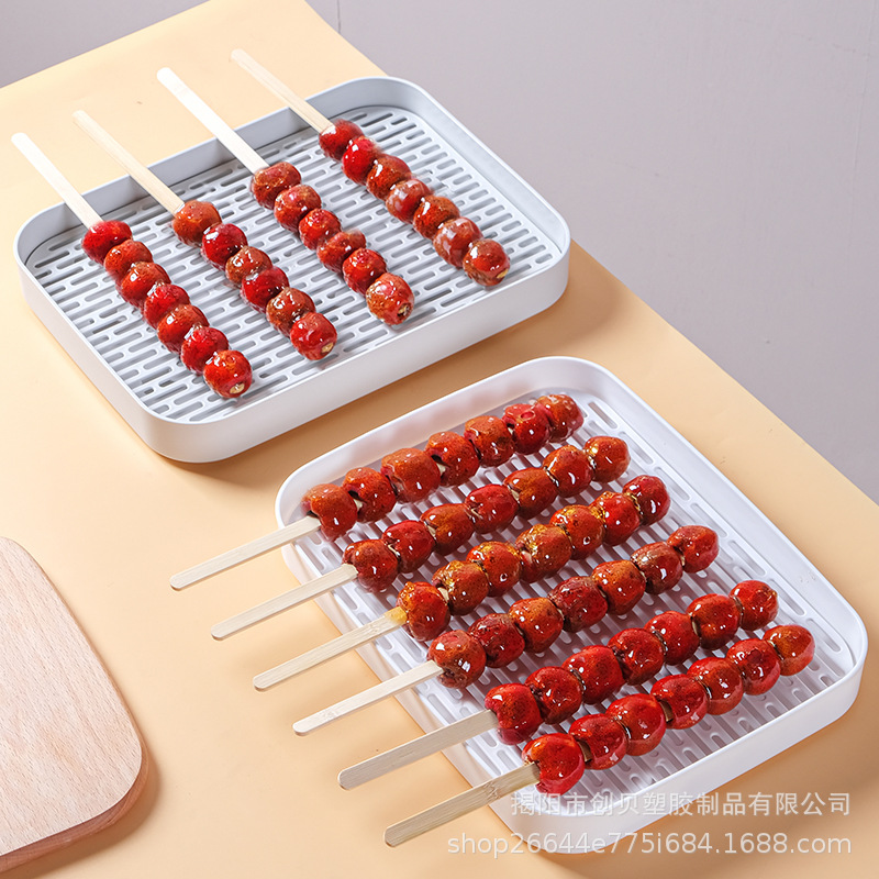 Trendy Food-Grade Candied Hawthorn Display Tray for Commercial Use, Rectangular Plastic Tray with Filter, Non-Stick
