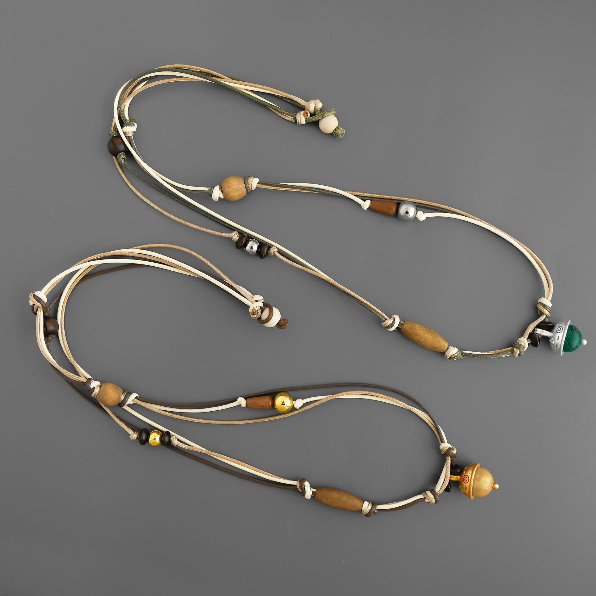 Swa* Home Hill Hazelnut Necklace Retro Korean Wax Rope Ethnic Style Hazelnut Totem Beaded Long Collarbone Chain