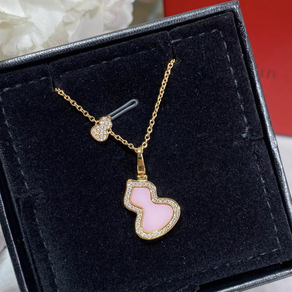 New Chinoiserie Champagne Gold National Trend Elegant Fashion Retro Non-Fading Clavicle Chain Agate Trim Diamond Gourd Necklace for Women