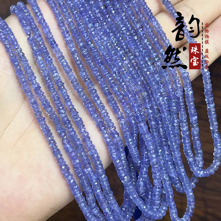 Natural Tanzanite necklace disc beads faceted semi-finished diy bracelet clavicle chain flat beads faceted loose beads accessories beads