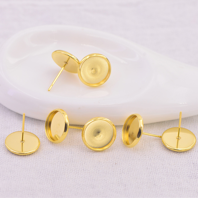 18K Real Gold Plated Stainless Steel Time Gem Base Basin Earrings Round Plate Stainless Steel Basin Holder DIY Jewelry Accessories