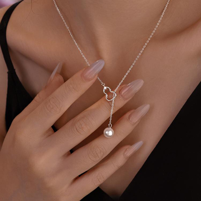 Gourd Pearl Tassel Necklace Women's Light Luxury Niche Design Advanced Style New Style Elegant Collarbone Chain Versatile Fashion