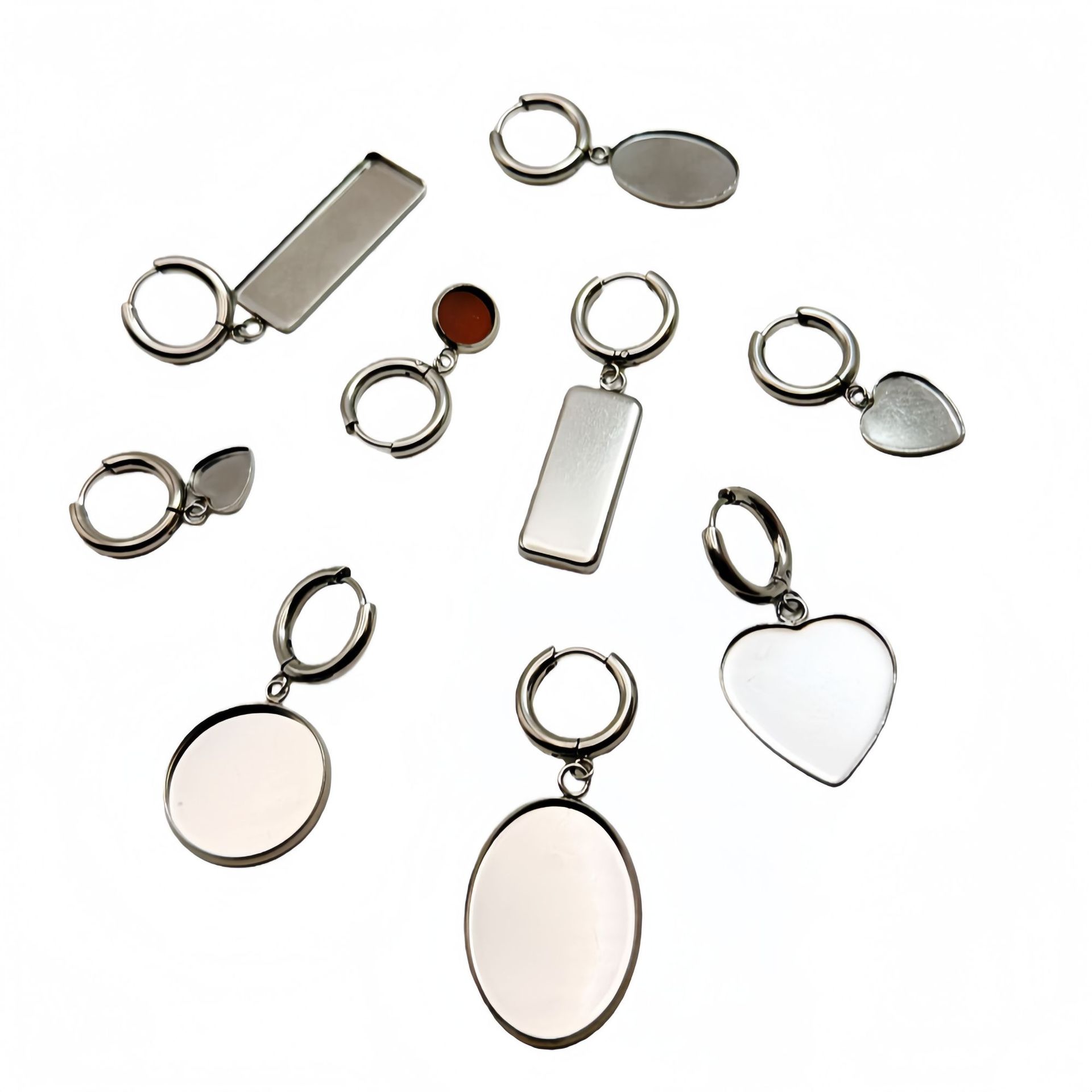 Stainless Steel Hoop Earrings with Disc Pendant Base, Personalized Simple Style Earrings DIY Earrings Accessories