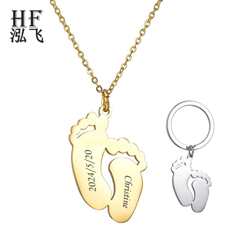 Simple wind baby little feet necklace pendant 304 stainless steel lettering necklace parent-child anniversary necklace wholesale