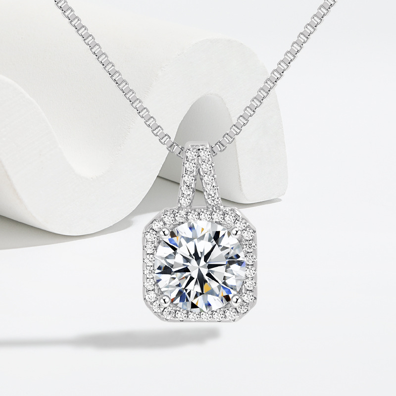 Cross-border Hot Sale Twelve Stars Stone Square Sugar Necklace European and American Gem Internet Celebrity High-grade Four-claw Square Bag Necklace