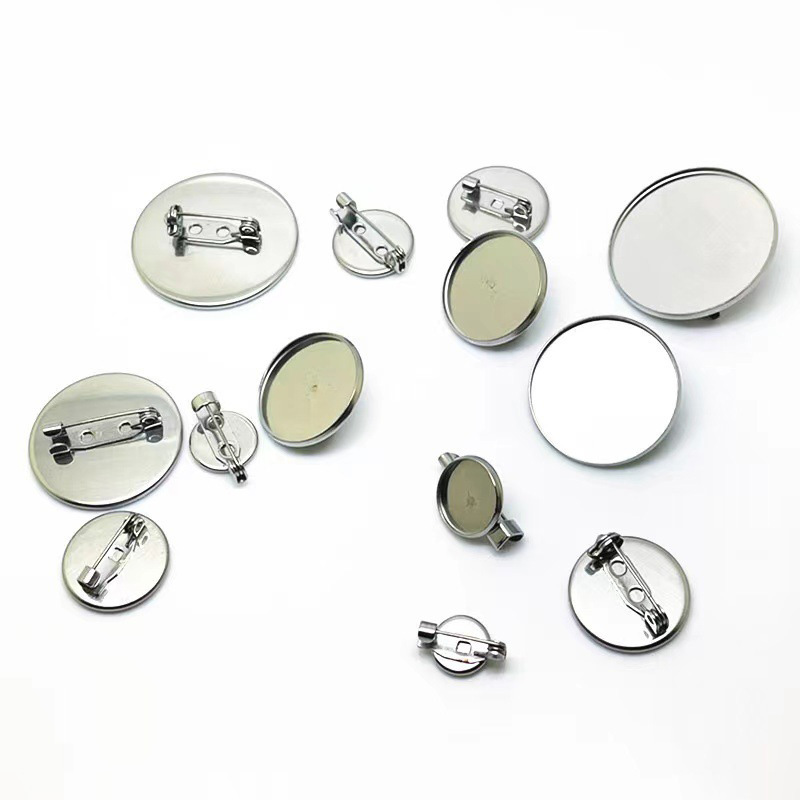 Factory wholesale disc brooch base stainless steel brooch gem tray welding pin safety pin jewelry accessories