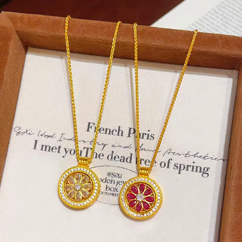 Gold Store Same Style Sand Gold Full Diamond Sunflower Rotatable Disc Pendant Eight Directions Attract Wealth Happiness and Completeness Pendant Necklace