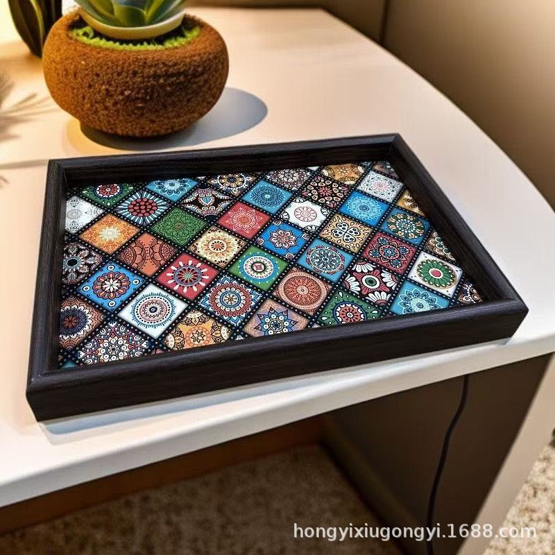 Bohemian Style Ornament Tray Living Room Creative Storage Tray Jewelry Snacks Home Leather Storage Tray