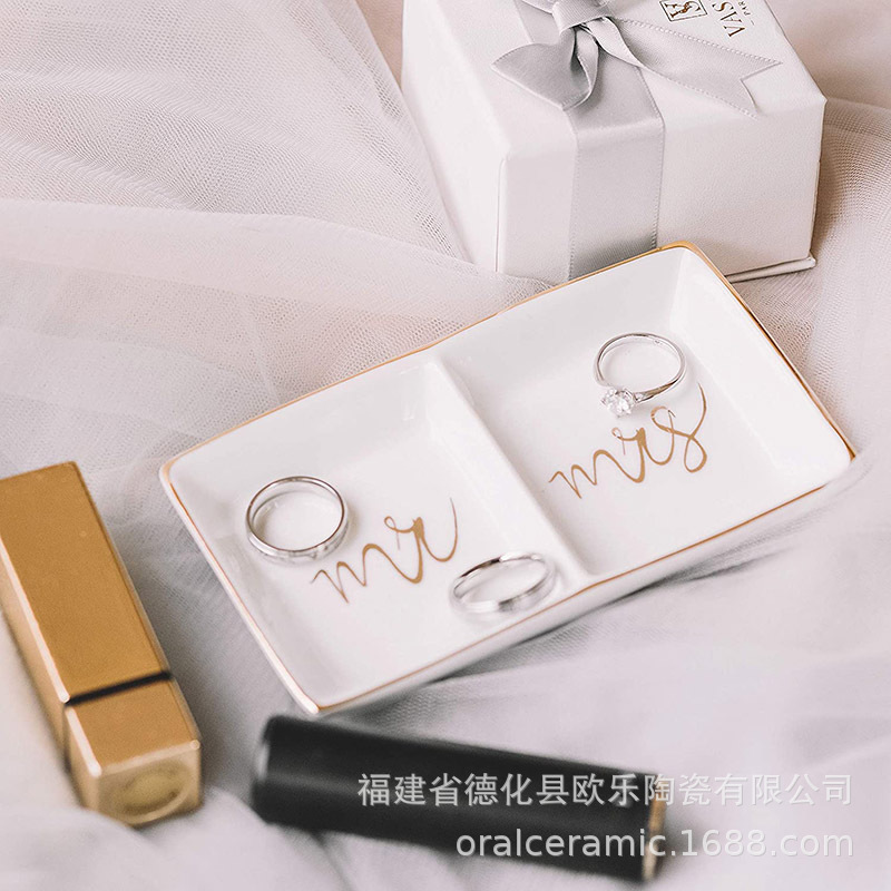 Cross-border ceramic portion storage tray two-grid rectangular grid decals finger jewelry tray home decoration ornaments