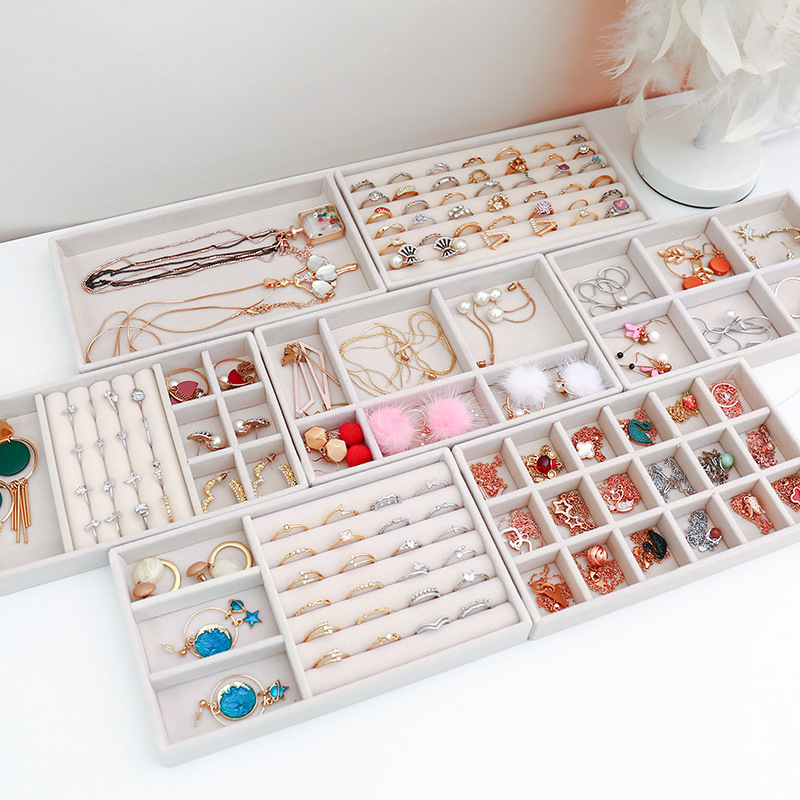 High-End Off-White Velvet Jewelry Tray Ring Storage Box Jewelry Display Props Jewelry Tray Viewing Tray Bracelet Tray