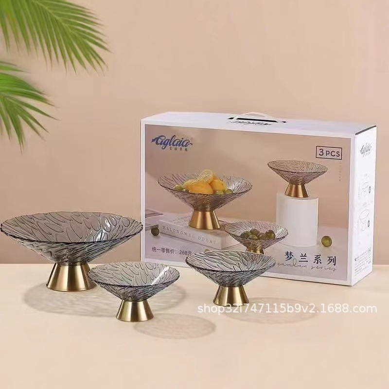 Aglaiya Menglan Fruit Plate Three-Piece Set Glass Fruit Plate Fruit Bucket Souvenir Jewelry Insurance Event Gift