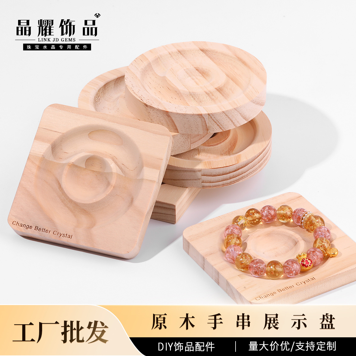 Jingyao Jewelry Square Jewelry Display Stand Handmade DIY Accessories Log Bracelet Display Plate Round Bracelet Wholesale