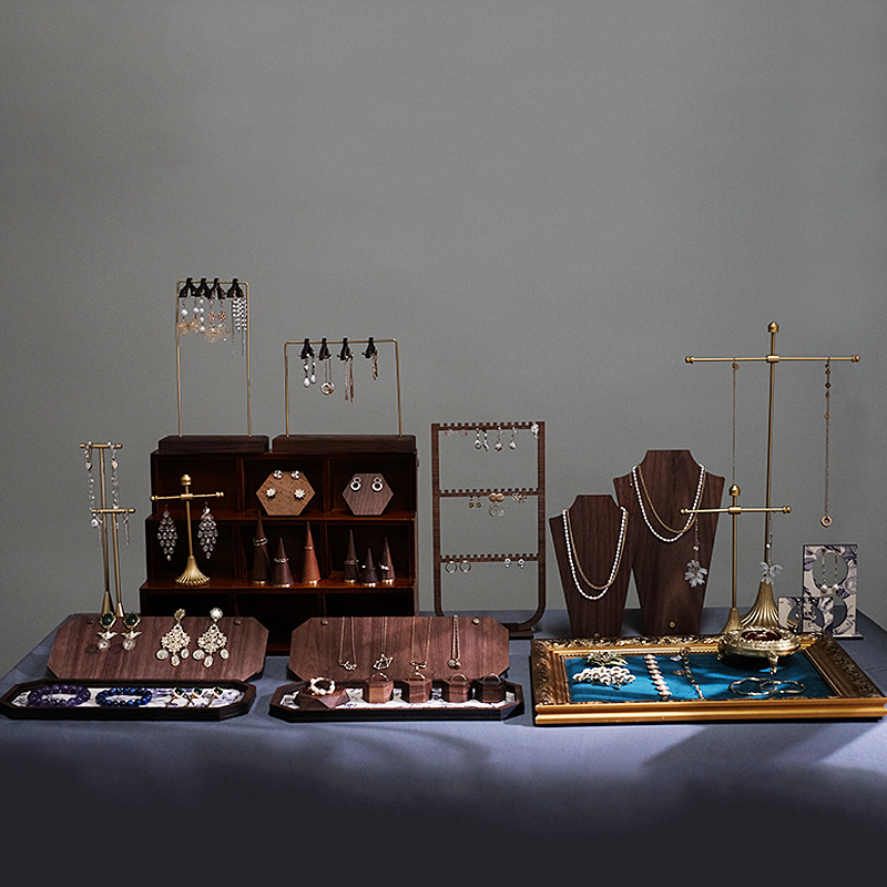 Jewelry Display Rack Retro Walnut Ring Holder Necklace Earrings Storage Shelf Jewelry Tray Jewelry Display Dao Heng