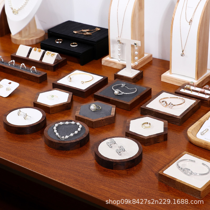 Black walnut solid wood hexagonal surface decoration block display props ring earrings earrings display jewelry rack