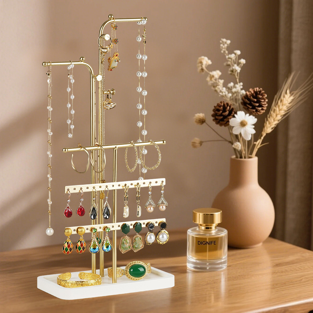 New jewelry display props beige silver jewelry necklace earrings display stand set display jewelry table