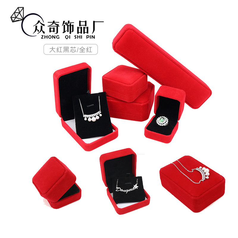 Factory Direct Supply Stainless Steel Ring Box Velvet Jewelry Box Velvet Jewelry Ring Pendant Earring Box High-End Feel