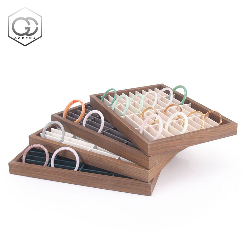 Retro 40-Position Bracelet Display Plate Jade Bracelet Bracelet Storage Box Walnut Velvet Jewelry Jewelry Classification Plate