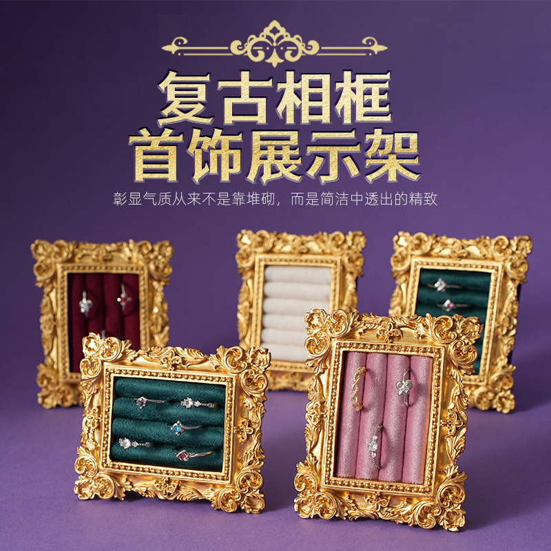 European Retro Mini Photo Frame Ring Storage Tray Bronze Resin Hollow Jewelry Positioning Frame Photo Props