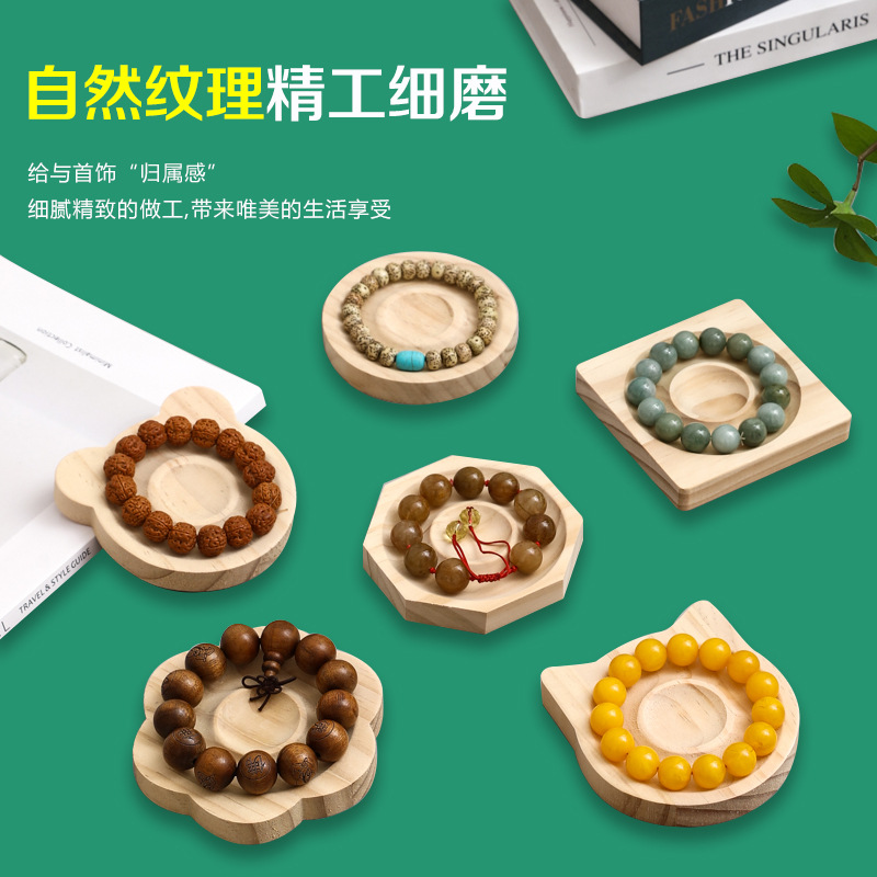 Solid Wood Beads Display Plate Pine Wood Color Bracelet Ornaments Display Jewelry Display Stand Creative Shooting Props