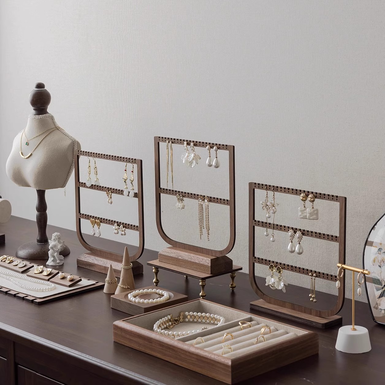 Jewelry earrings display rack walnut veneer multi-layer jewelry earrings ear stud rack large capacity jewelry stall display