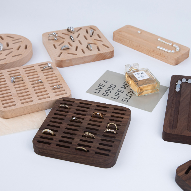 Walnut Beech Jewelry Tray Jewelry Ring Display Plate Market Stall Counter Live Shooting Props