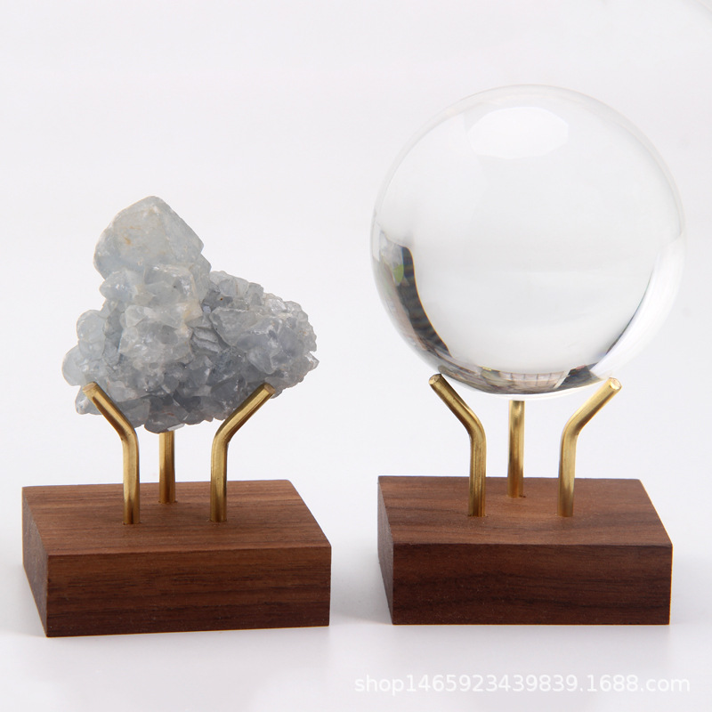 5cm factory New Design walnut with copper crystal ball display rack mineral raw stone gem base jewelry rack