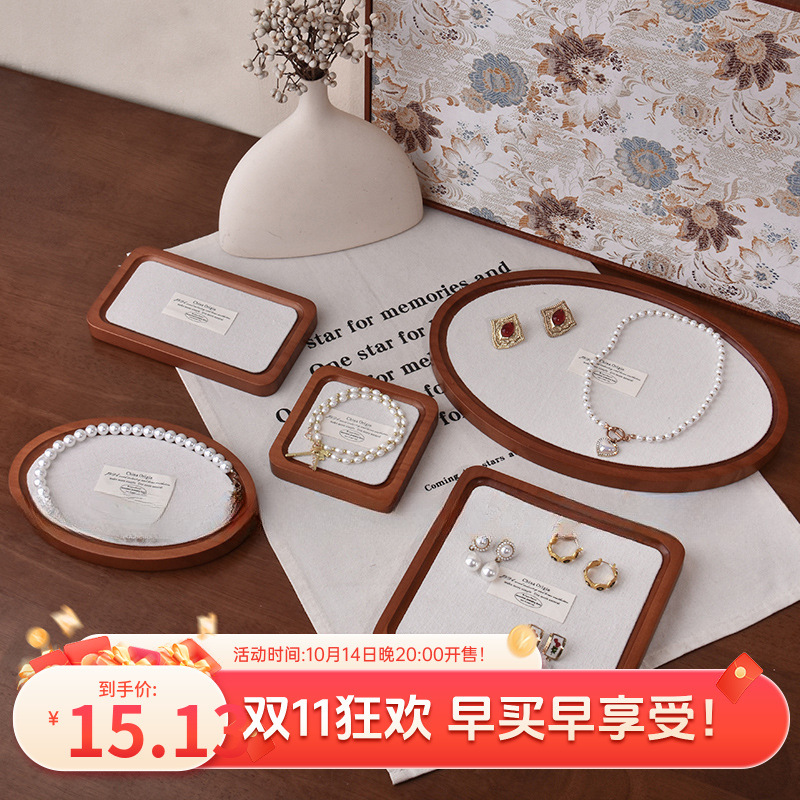 Bracelet Display Linen Photo Prop Tray Bracelet Ornament Jewelry Ring Jewelry Tray Wooden Solid Wood Retro Corner Tray
